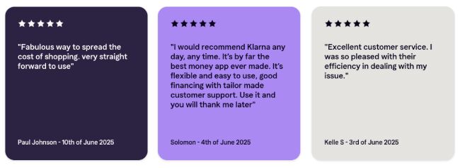 4. Manage Payments: Klarna will run a quick credit check and approve your order (subject to status). Klarna sends confirmation and reminders – you can also manage payments in the Klarna app.
